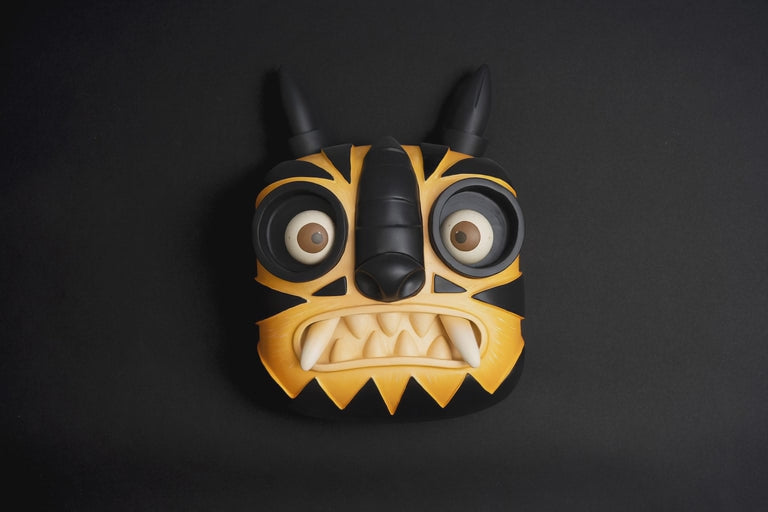 Tigre by Mr. Mitote Unique Mixed-Media Mask Artwork is a unique mixed-media mask artwork created in 2025 that explores strength, instinct, and territorial presence through symbolic form. The tiger has long represented power, vigilance, and dominance across cultures, and in this work it is reinterpreted through a contemporary sculptural language that merges ancestral reference with modern urban expression.